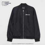 Jaket berbahan Polyester 38%, Polyamide 62% dengan warna hitam, navy dan coklat, memiliki kantong bersleting di bagian tangan kiri atas dan memiliki ukuran S, M, L dan XL.