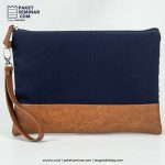 Pouch berbahan kanvas dan kulit sintetis dengan warna navy, memiliki 1 kantung dan dapat di brandiing dengan sablon, emboss atau laser.