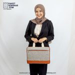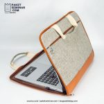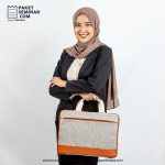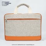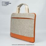 Laptop sleeve berbahan polyester+kulit berwarna abu-abu misty, dapat digunakan untuk membawa laptop dengan ukuran 14 inch dan dapat dibranding dengan sablon.