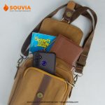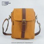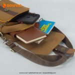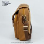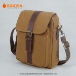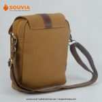 Shoulderbag berbahan kanvas berwarna khaki, dengan 1 kompartemen utama dan 1 kompartemen yang lebih kecil di bagian depan, dapat di branding dengan sablon.
