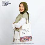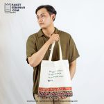 Totebag berbahan dasar blacu dan batik dengan warna putih dan cream dan dapat di branding dengan sablon.
