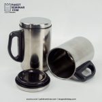 Mug berbahan dasar 201#SUS dengan warna silver, berkapasitas 350 ml dan dapat di branding dengan laser.